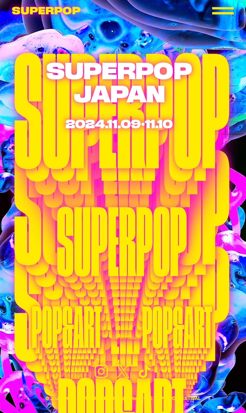 SUPERPOP JP is a pop & art festival that aims to deliver original artistic experiences. We redefine the intersection of music and art, bringing together various elements of pop culture in one space.