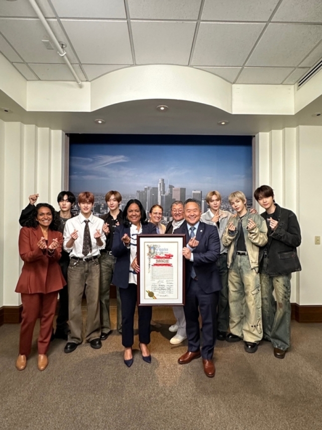 LA 시의회는 21일(현지시간) 미국 LA 시청에 라이즈 멤버들을 초청해 이들에게 감사의 뜻을 담은 결의안을 전달했다.