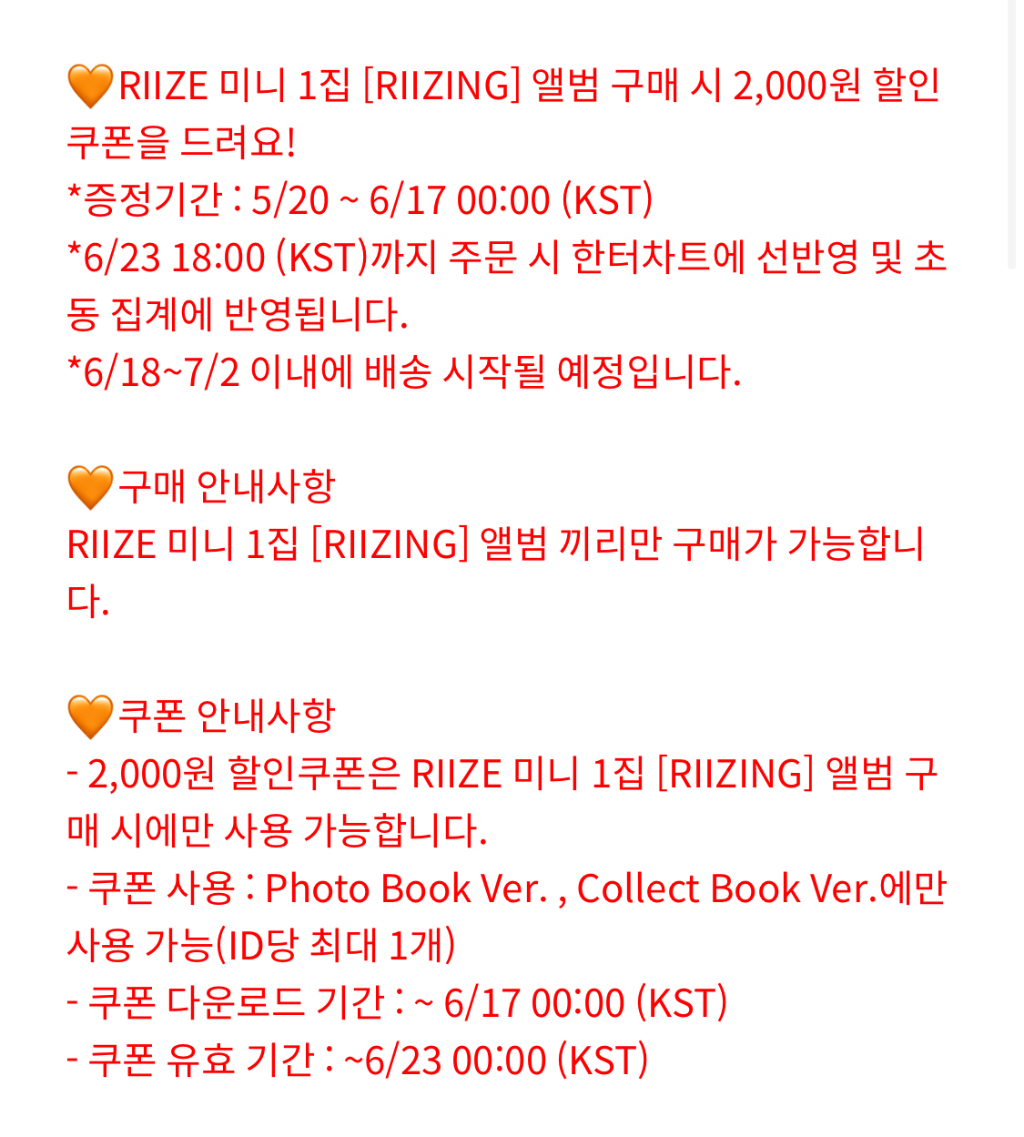 RIIZE THE 1st Mini Ablum 'RIIZING' 발매 기념 '특전 증정 EVENT' 안내 라이즈미니앨범 특전