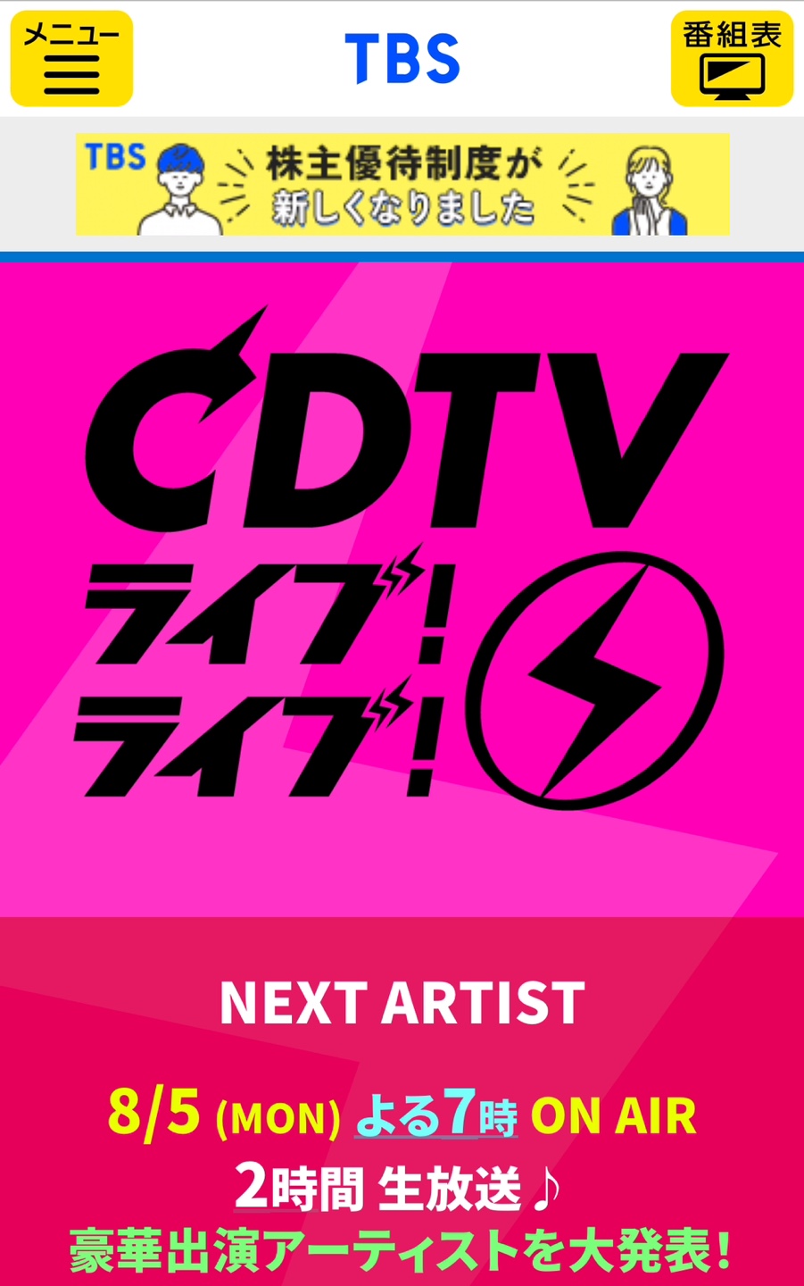 TBSテレビ「CDTV ライブ! ライブ!」番組公式サイト。