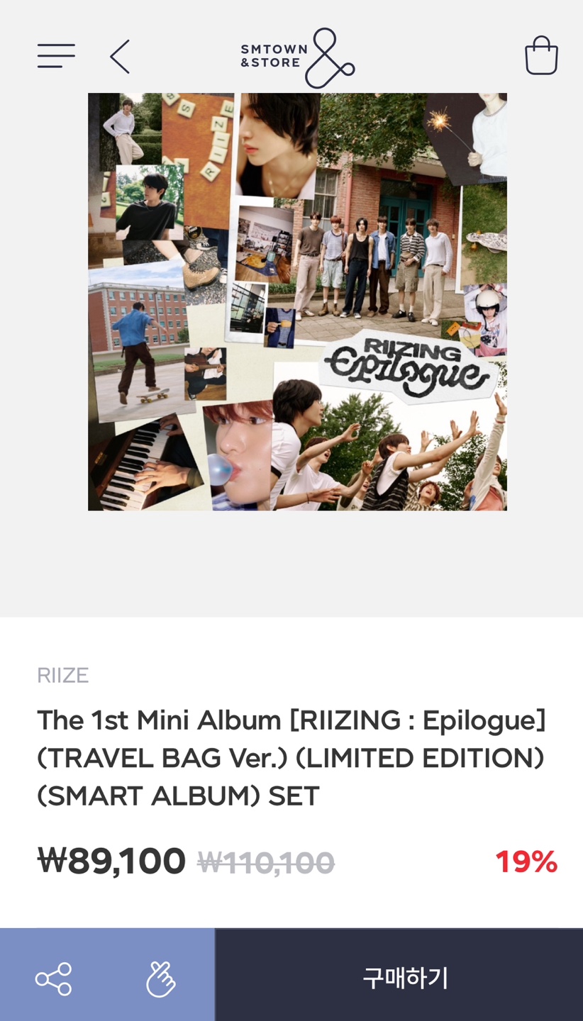 - 상품 : RIIZE The 1st Mini Album [RIIZING : Epilogue] (TRAVEL BAG Ver.) (LIMITED EDITION) (SMART ALBUM)