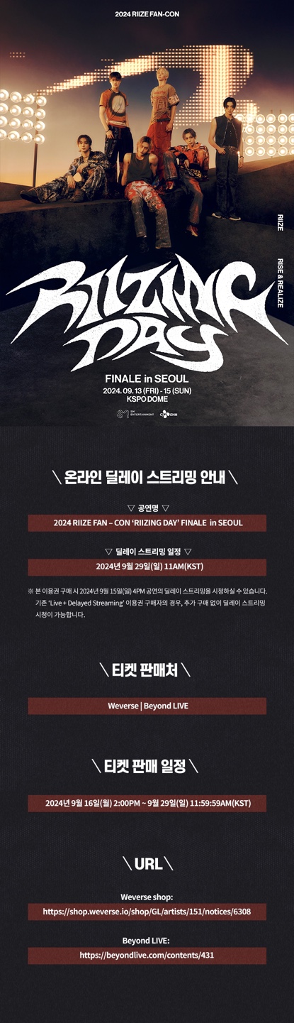 [공지] 2024 RIIZE FAN-CON 'RIIZING DAY' FINALE in SEOUL 온라인 딜레이 스트리밍 이용권 상세 안내